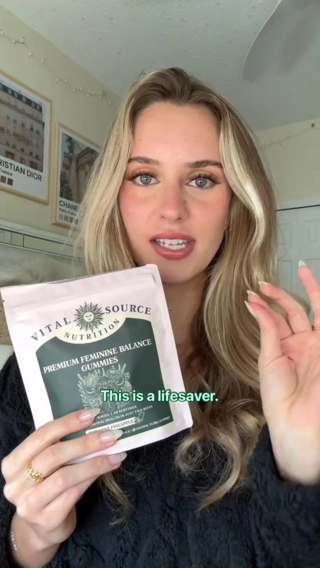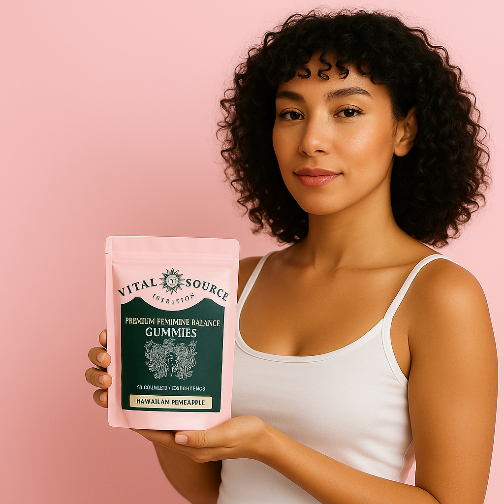 Balanced pH, simply — probiotics (e.g., Bacillus coagulans, 1B CFU/serving) support healthy vaginal flora.